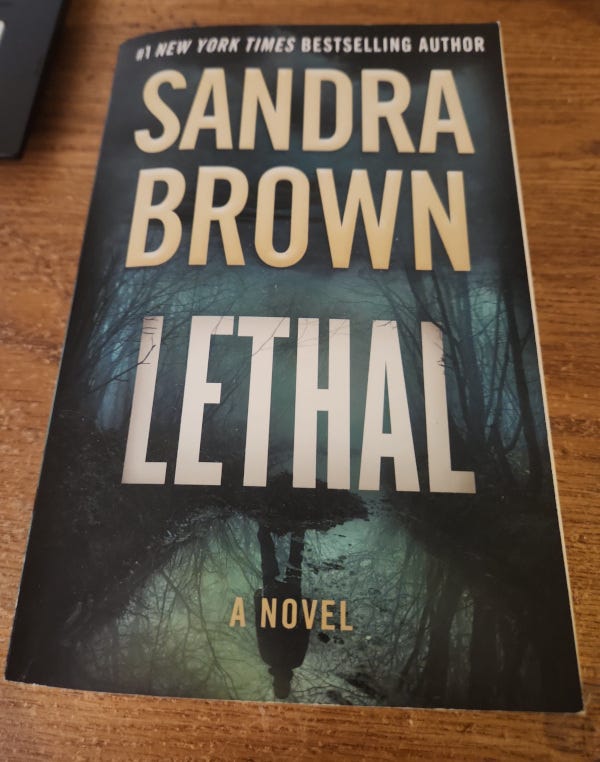 For my 34th birthday, I went to the bookstore and chose Lethal by Sandra Brown.